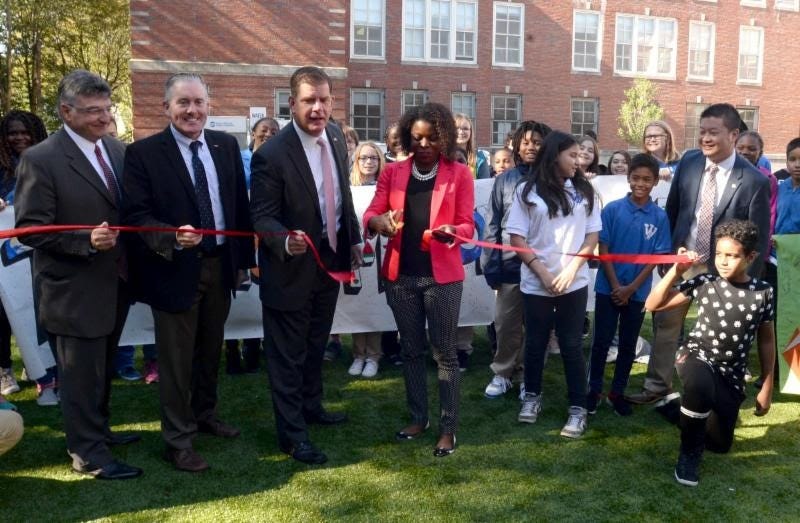 Mayor Walsh Students Celebrate Washington Irving Middle Green Infrastructure